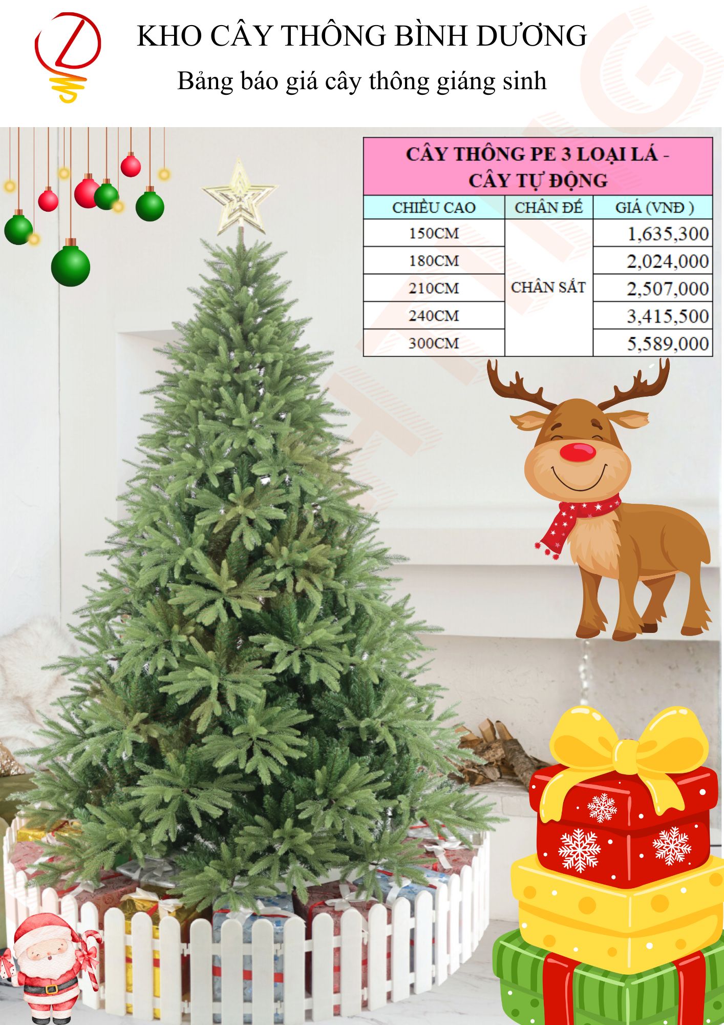 Cây thông PE 3 loại lá – Cây tự động