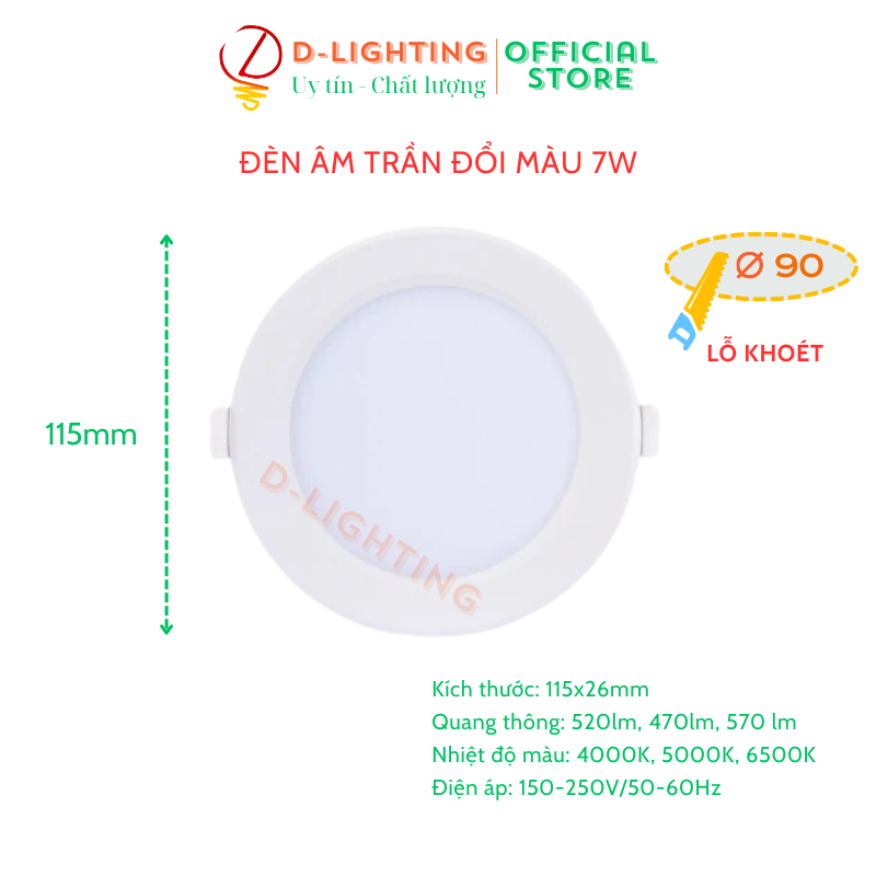 Đèn led âm trần Rạng Đông đổi màu PT04.V2 90 7W