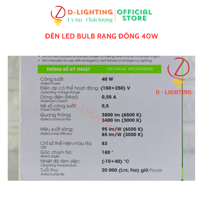 Hệ số trả màu (CRI) 83