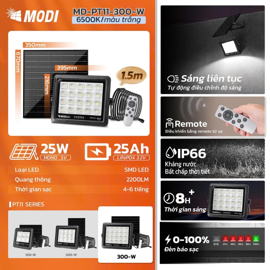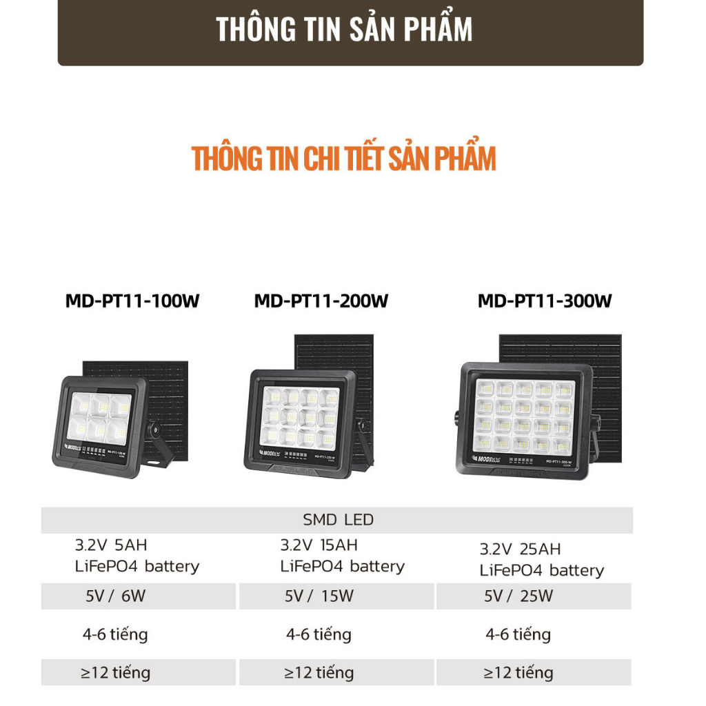 Đèn Năng Lượng Mặt Trời MODI SOLAR Chống Nước IP65 bóng LED SMD 2835