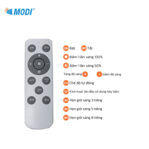 Cách hoạt động: Chế độ cảm biến ánh sáng/điều khiển từ xa/sáng liện tục/hẹn giờ sáng
