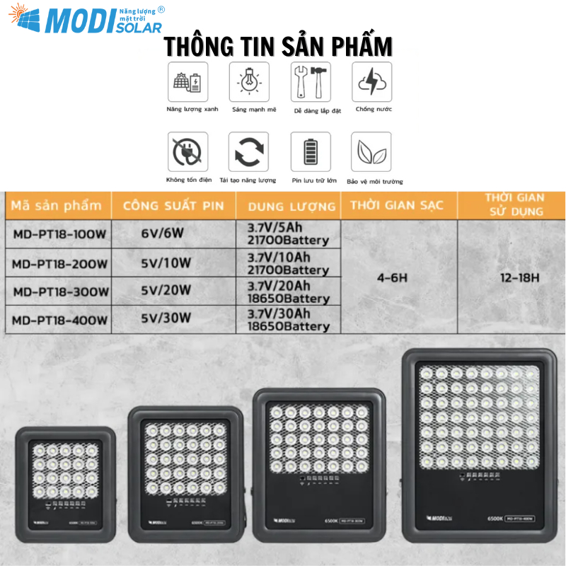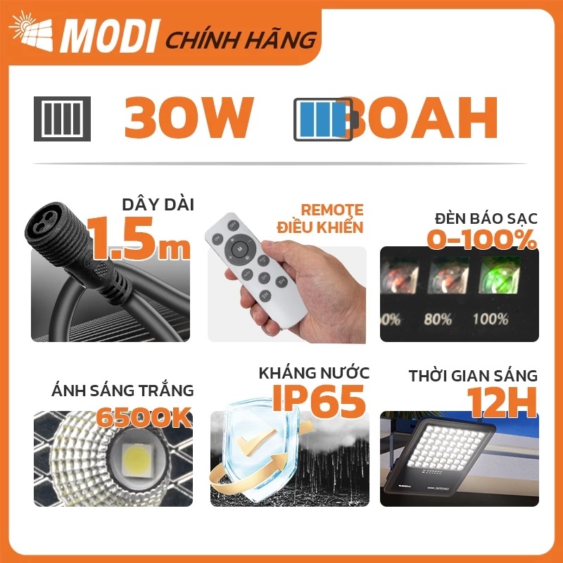 Đèn Năng Lượng Mặt Trời MODI SOLAR Chống Nước IP65 bóng LED SMD 2835